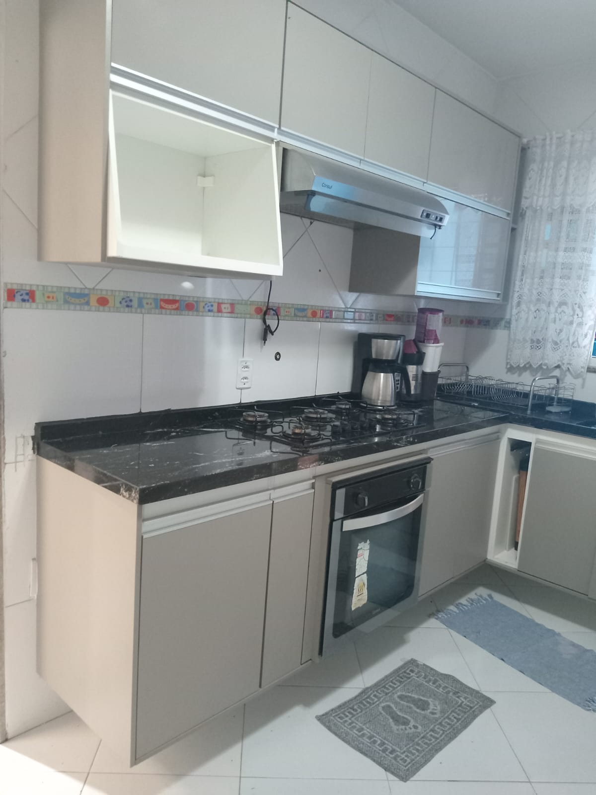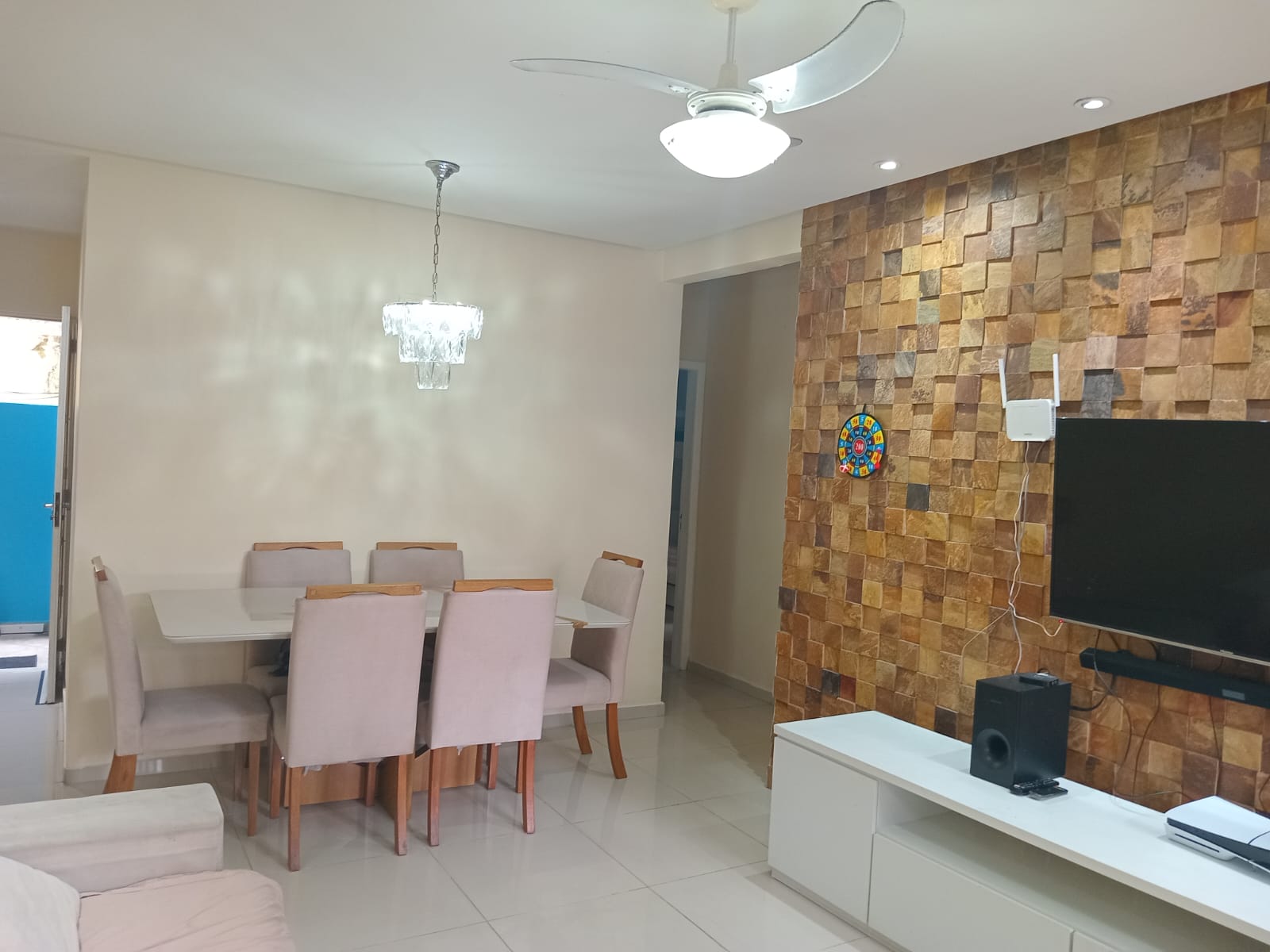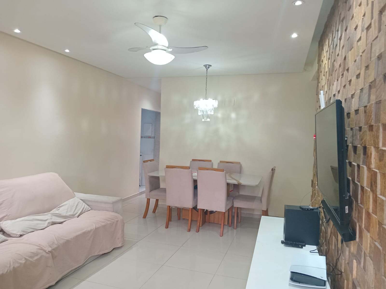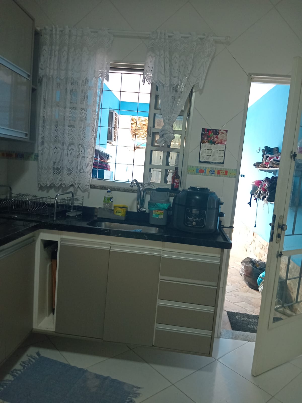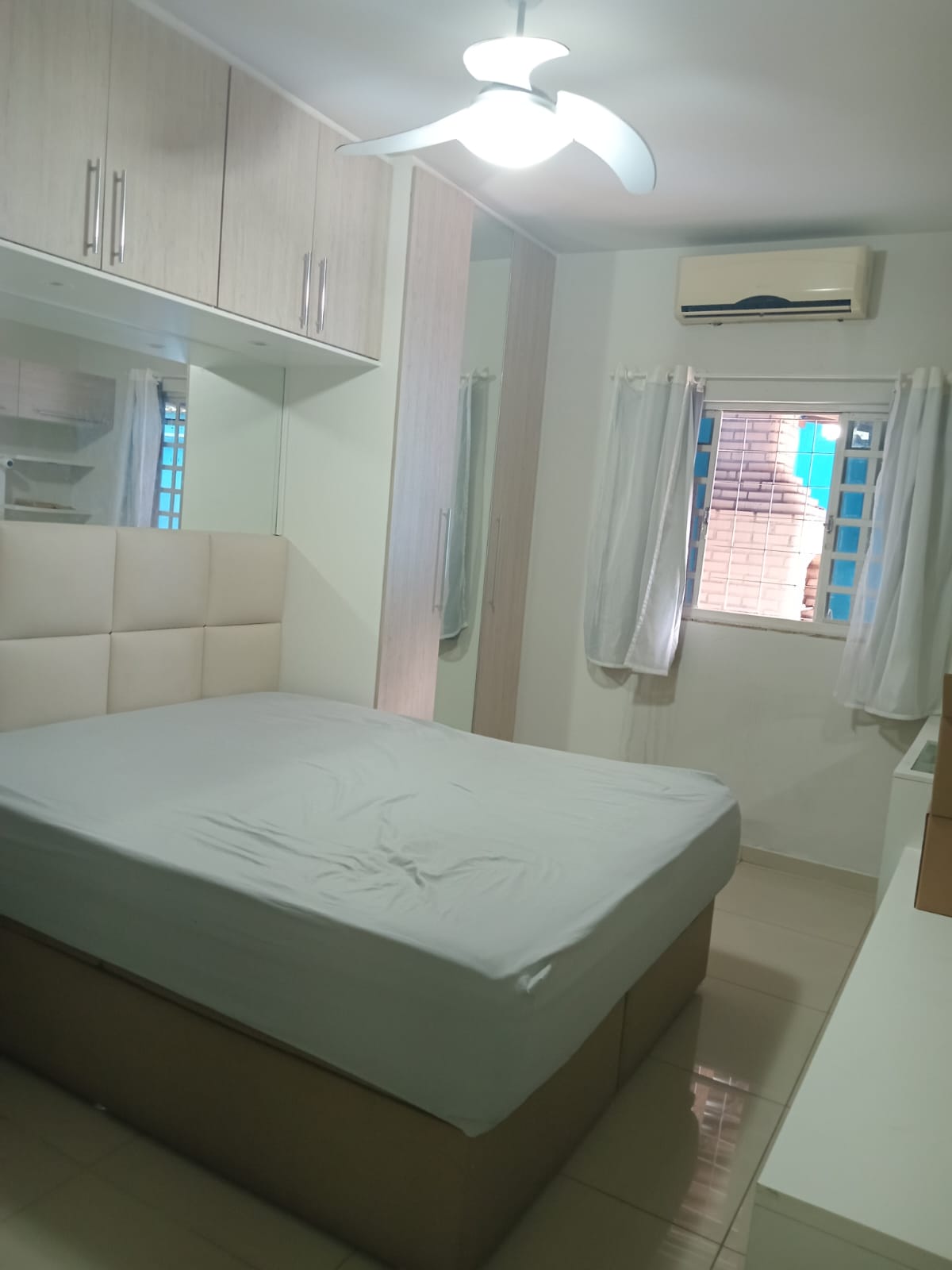 2 quartos( sendo 1 suite) e cozinha com armarios planejados, sala, banheiro, área de serviço, churrasqueira e garagem.