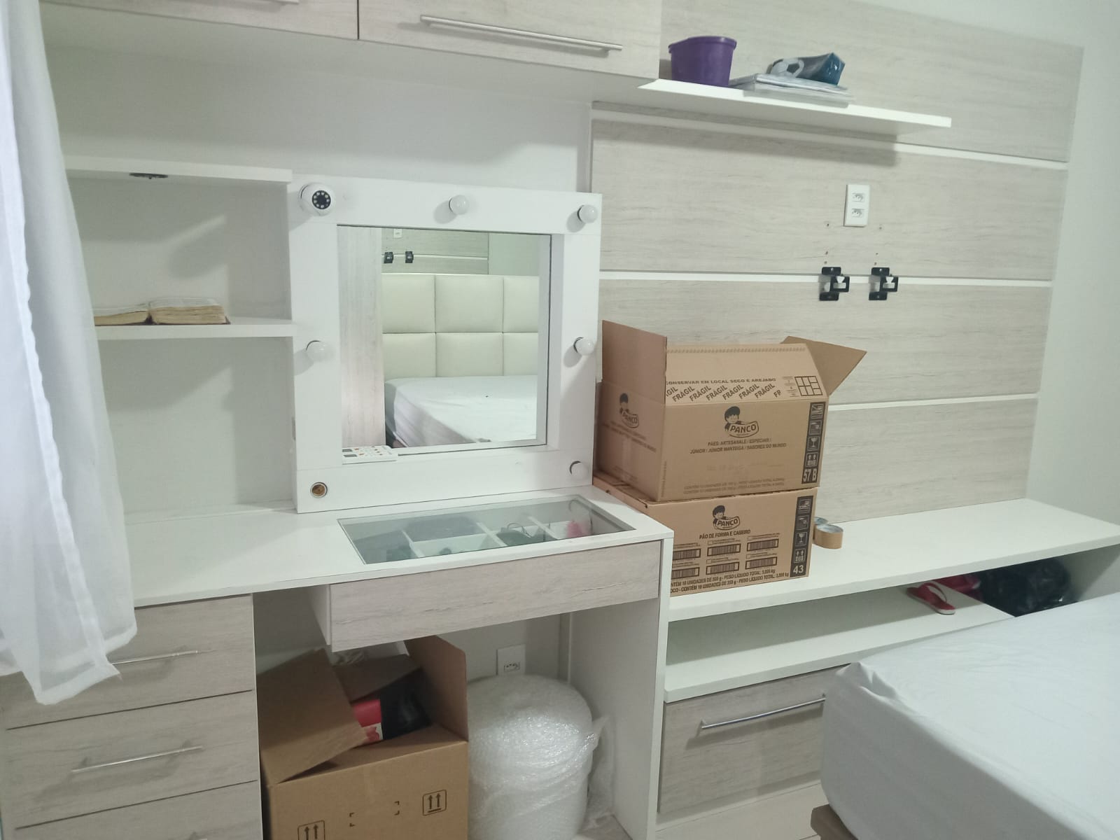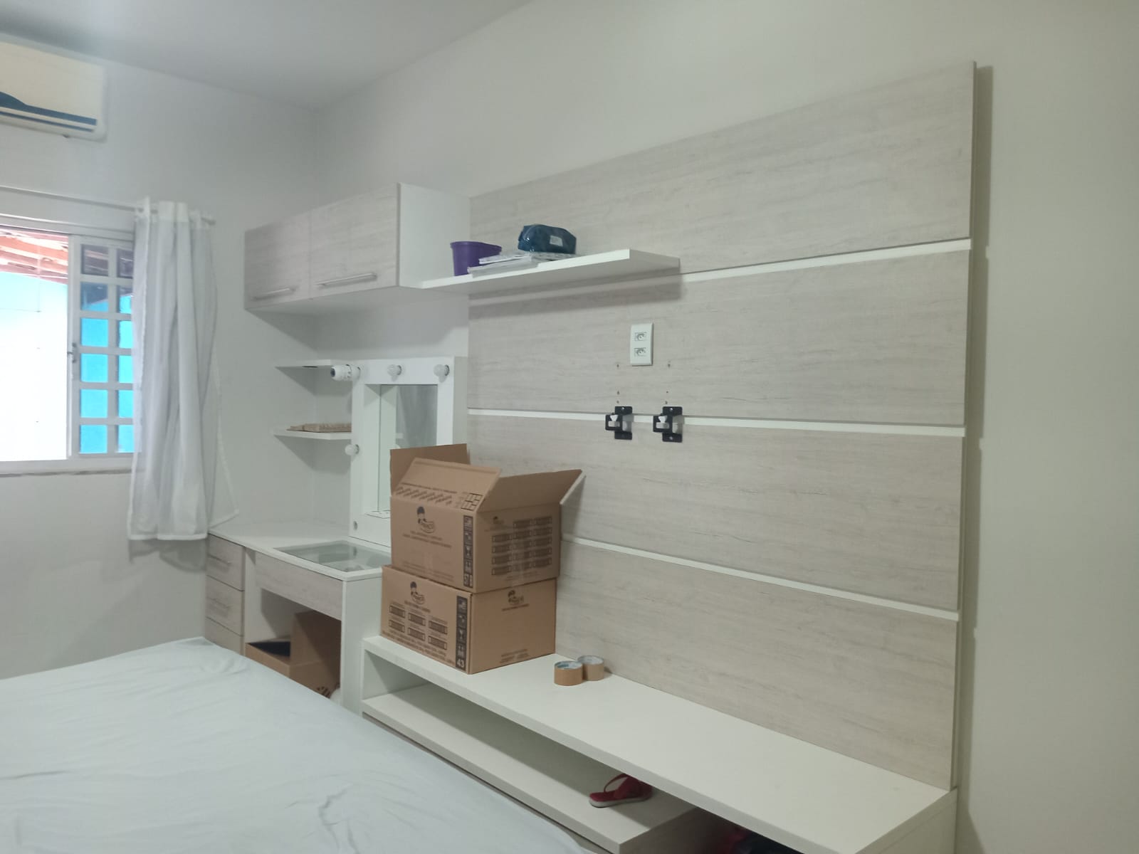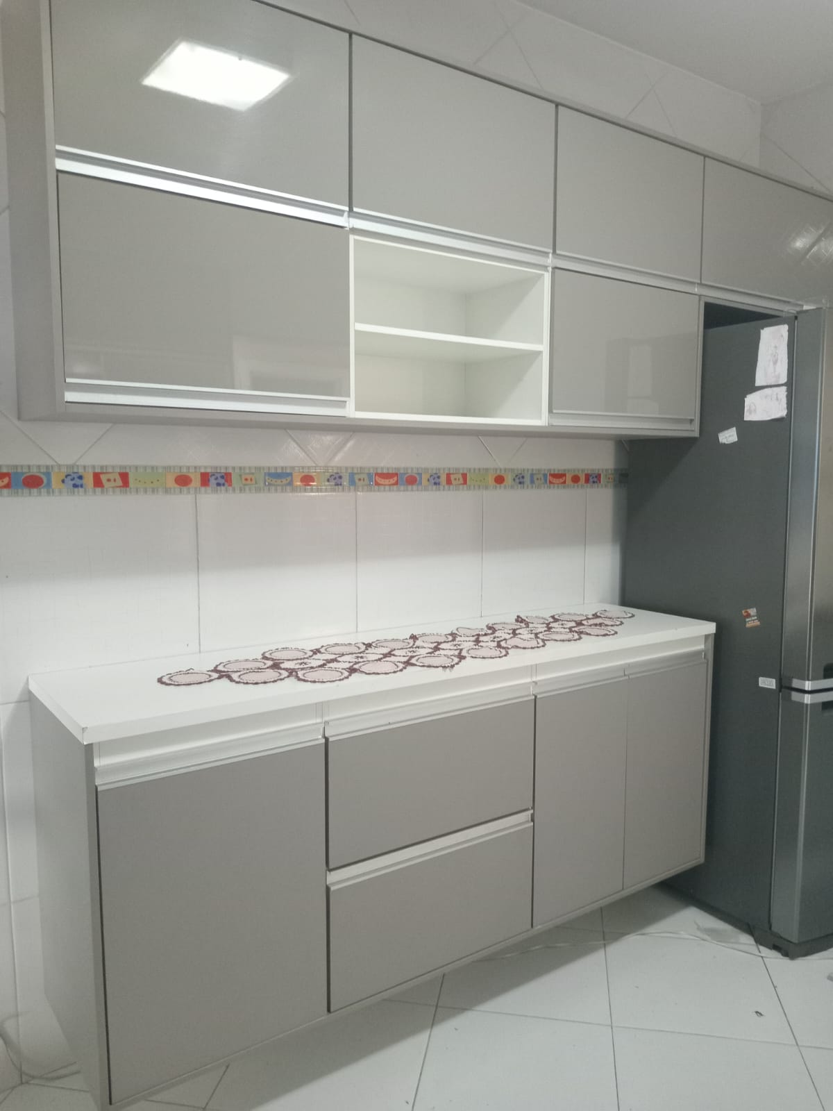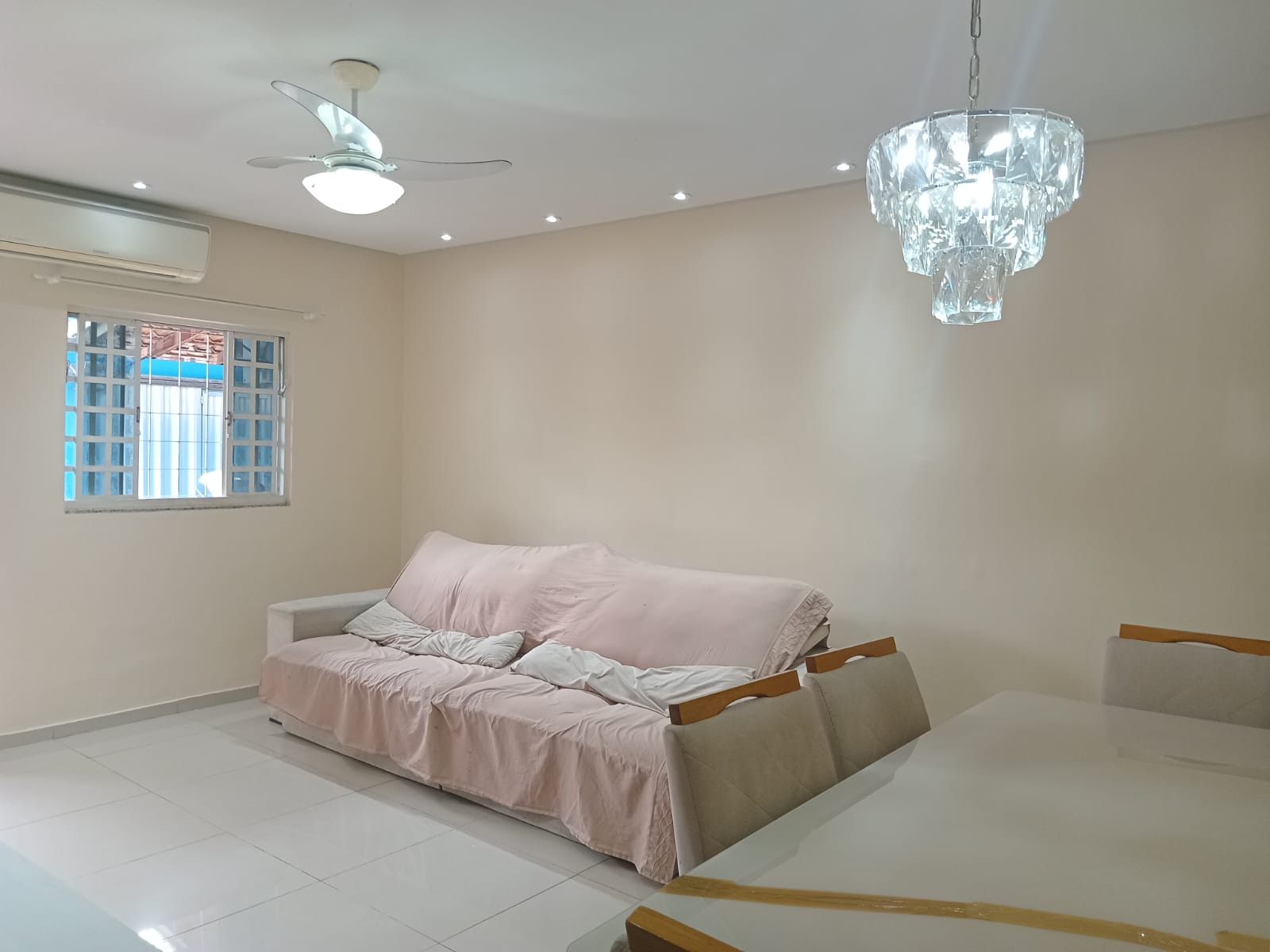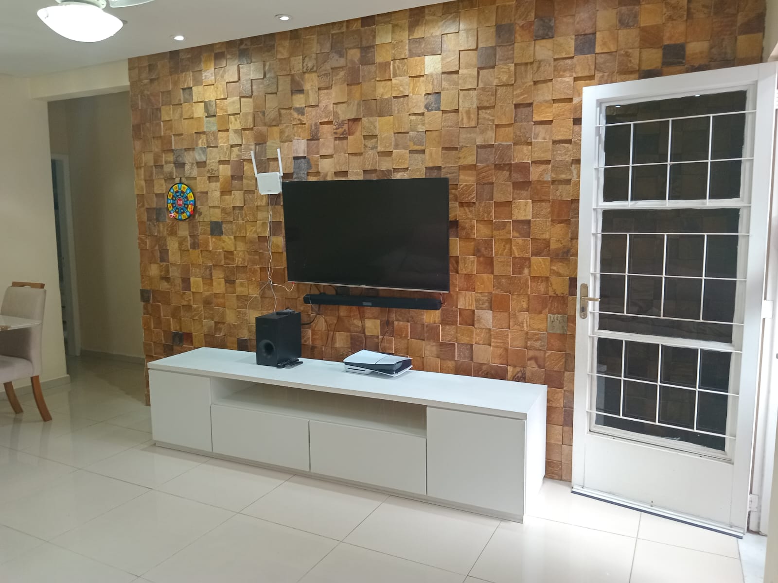 2 quartos( sendo 1 suite) e cozinha com armarios planejados, sala, banheiro, área de serviço, churrasqueira e garagem.