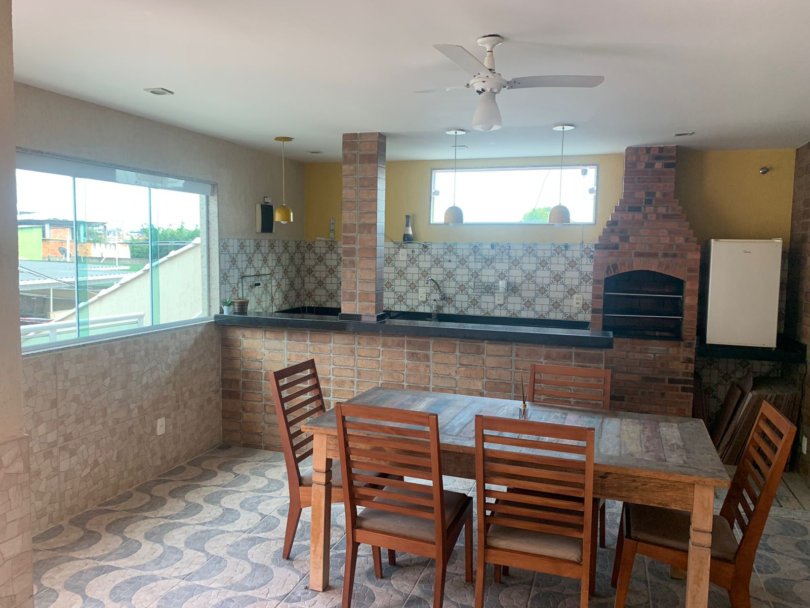Casa com 2 quartos (sendo 1 suíte), sala, cozinha americana, banheiro, área de serviço, varanda, churrasqueira.